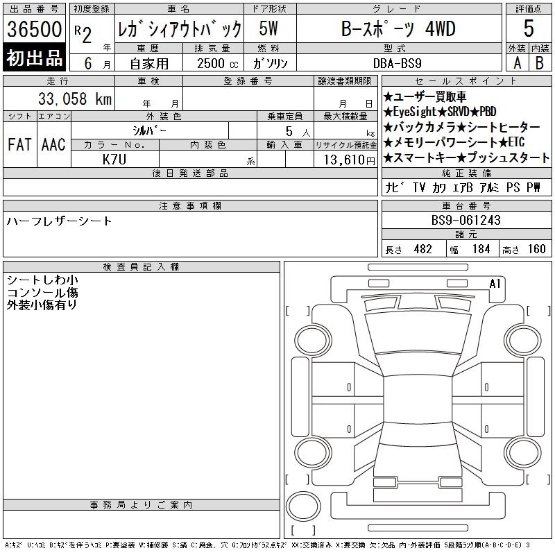 SUBARU OUTBACK B- SPORT 4WD - лот 36500