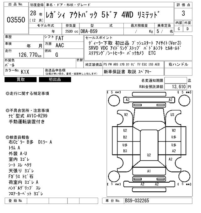 SUBARU OUTBACK LIMITED - лот 3550