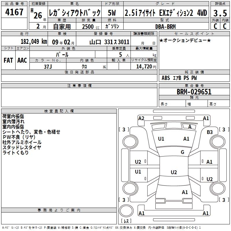 SUBARU OUTBACK 2.5I EYESIGHT EXETE2 4WD - лот 4167