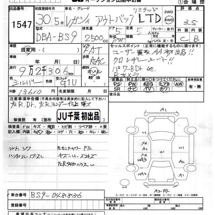 SUBARU OUTBACK 4WD LTD - лот 1547
