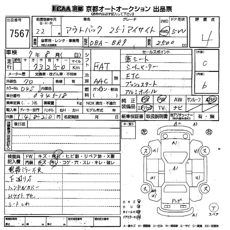 SUBARU OUTBACK 2.5I EYESIGHT 4WD - лот 7567