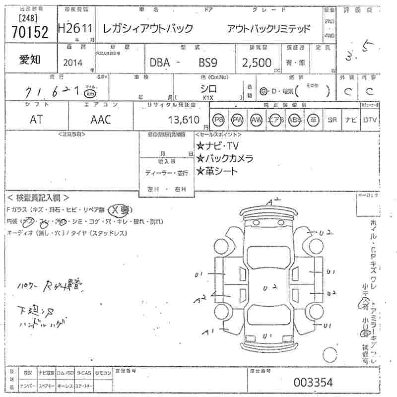 SUBARU OUTBACK OUTBACK LIMITED - лот 70152