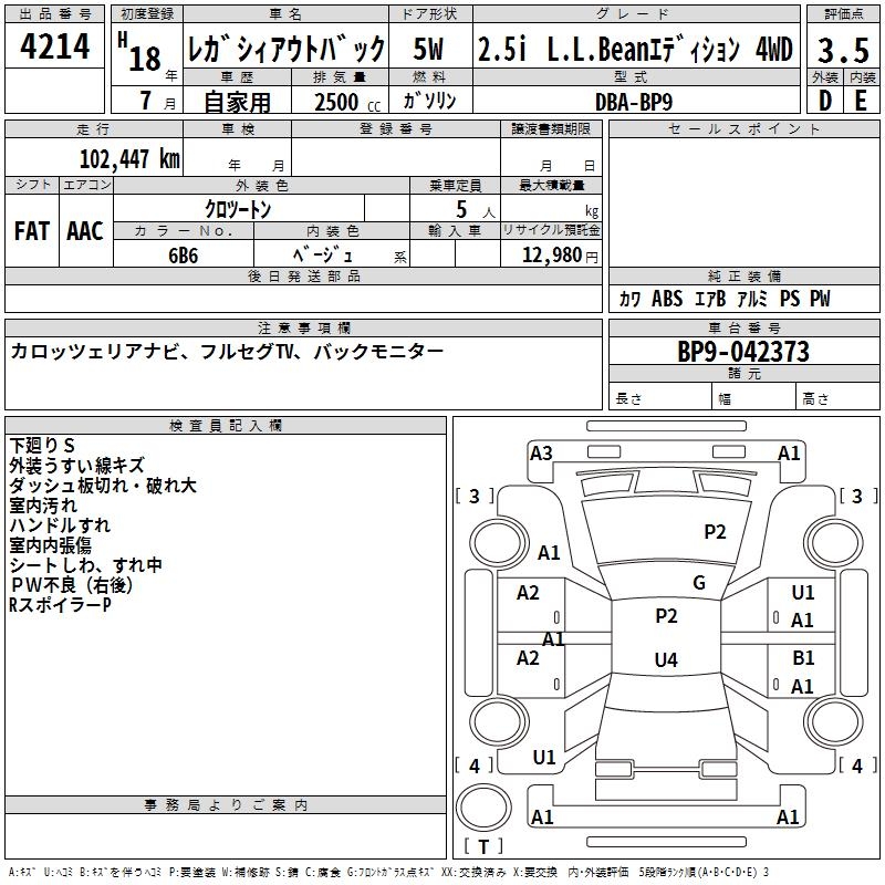 SUBARU OUTBACK 2.5I L.L.BEANETE4WD - лот 4214