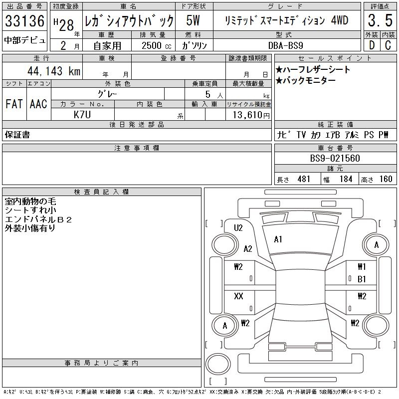 SUBARU OUTBACK LIMITED SMART EDITION 4WD - лот 33136