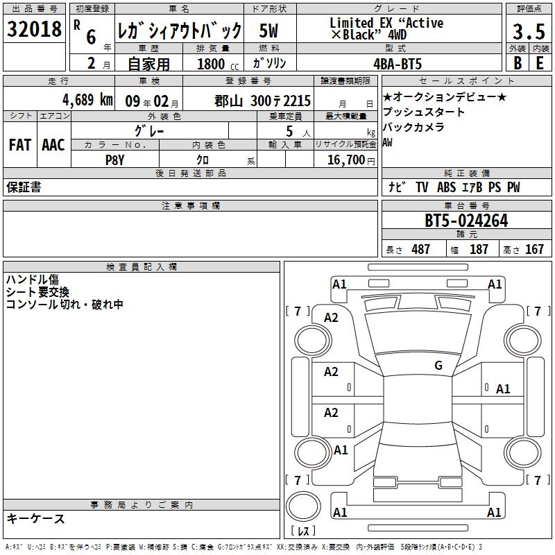 SUBARU OUTBACK LIMITED EX " ACTIVE 4WD - лот 32018