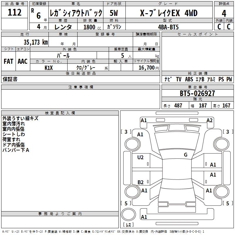 SUBARU OUTBACK X- BREAK EX 4WD - лот 112