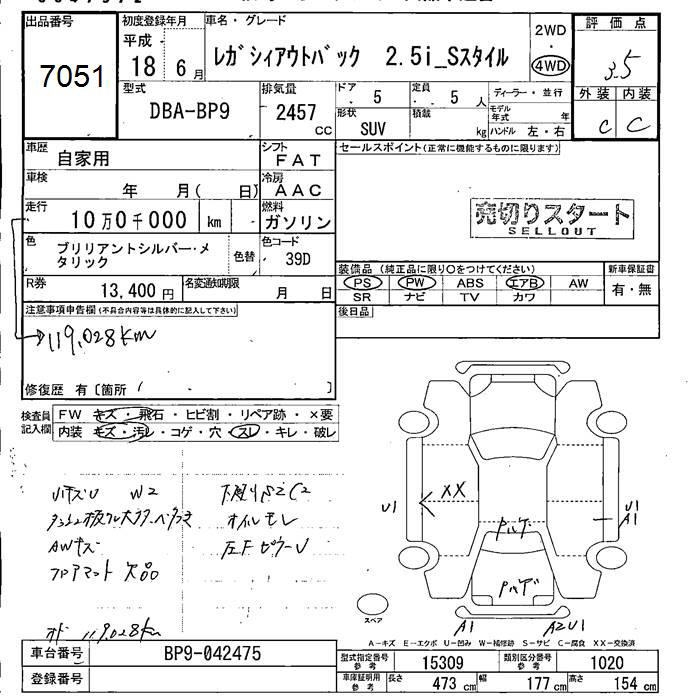 SUBARU OUTBACK 4WD 2.5I S STYLE - лот 7051