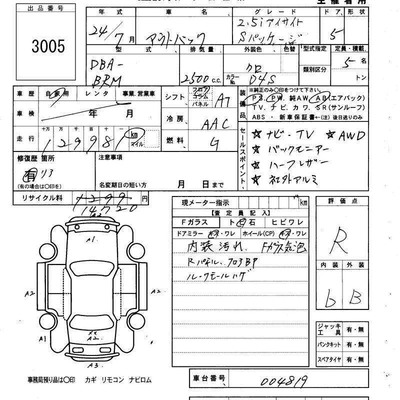 SUBARU OUTBACK 2.5I EYESIGHT S PACKAGE - лот 3005