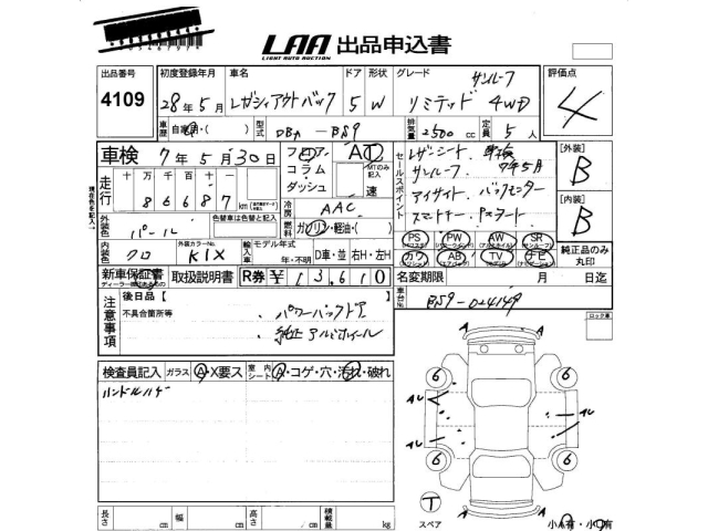 SUBARU OUTBACK limited 4WD люк - лот 4109