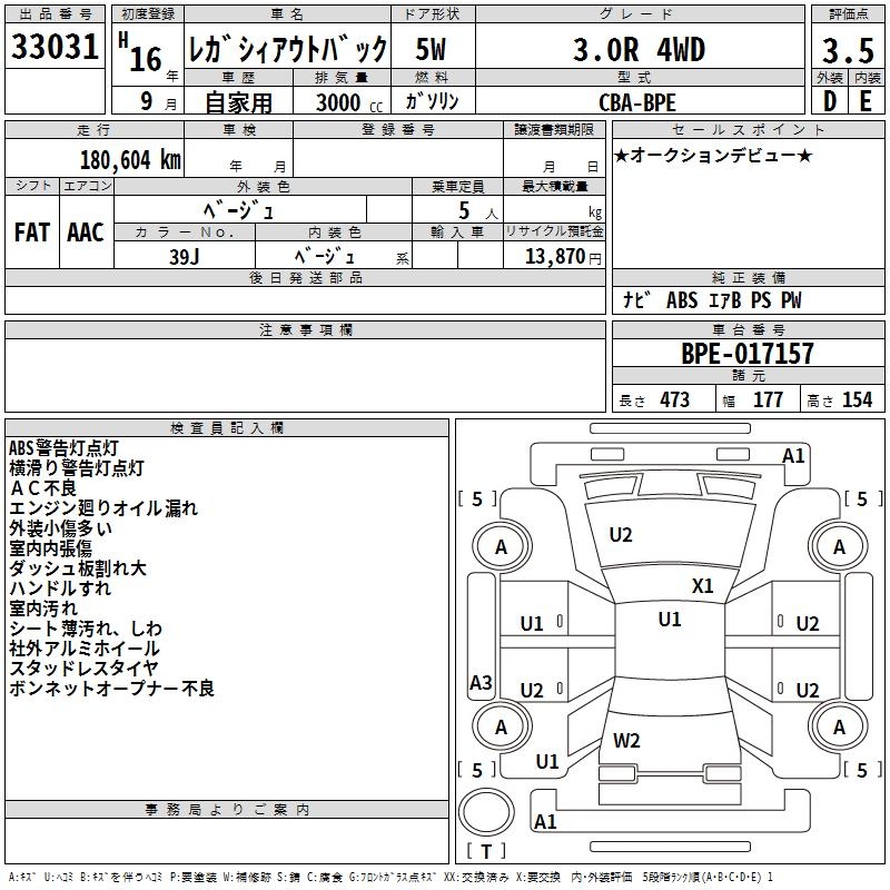 SUBARU OUTBACK 3.0R 4WD - лот 33031