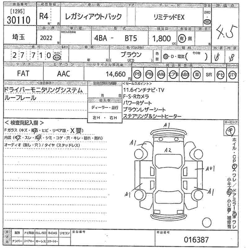 SUBARU OUTBACK LIMITED EX - лот 30110
