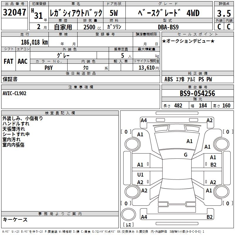 SUBARU OUTBACK BASE GRADE 4WD - лот 32047