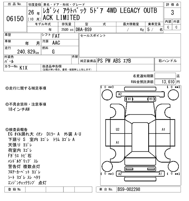 SUBARU OUTBACK LEGACY OUTBACK LIMITED - лот 6150