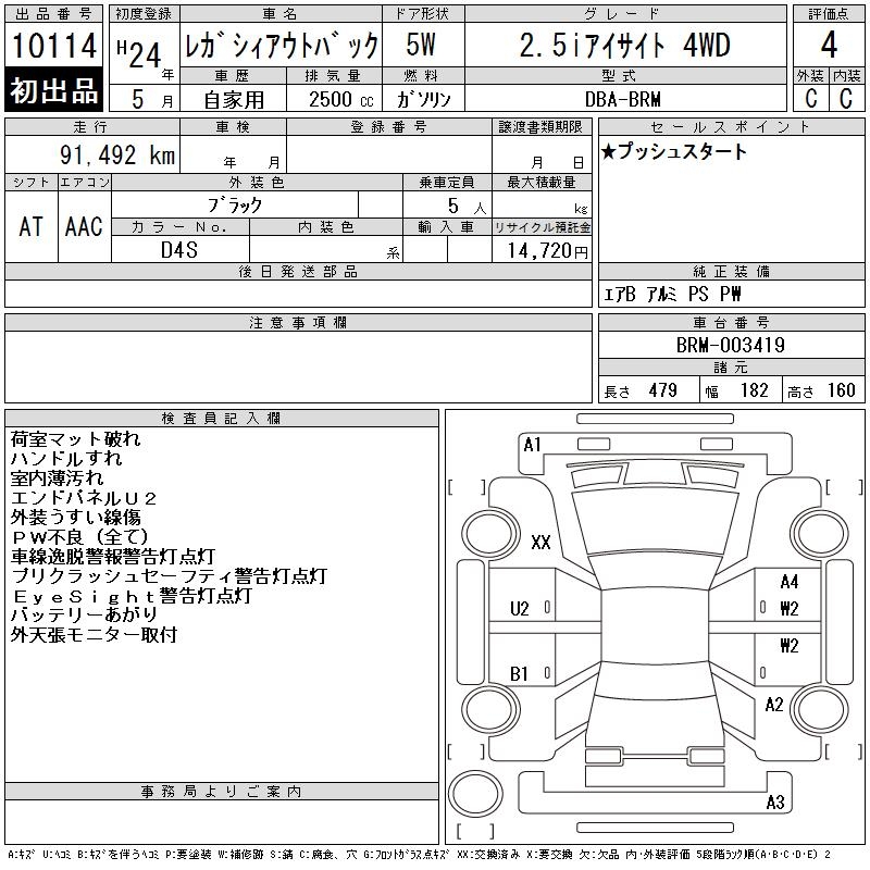 SUBARU OUTBACK 2.5I EYESIGHT 4WD - лот 10114