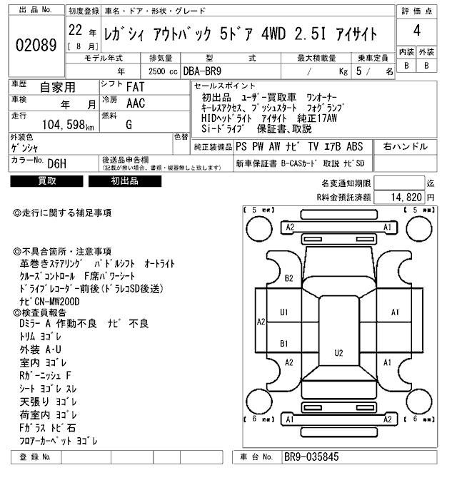 SUBARU OUTBACK 2.5I EYESIGHT - лот 2089