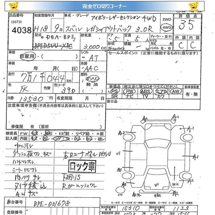 SUBARU OUTBACK 4WD 3.0R IVORY LEATHER SELECTION - лот 4038