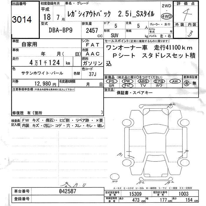 SUBARU OUTBACK 2.5I S STYLE 4WD - лот 3014