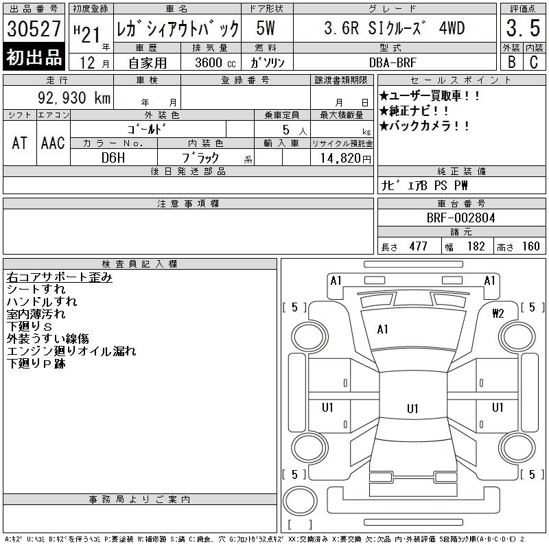 SUBARU OUTBACK 3.6R SI CRUISE 4WD - лот 30527