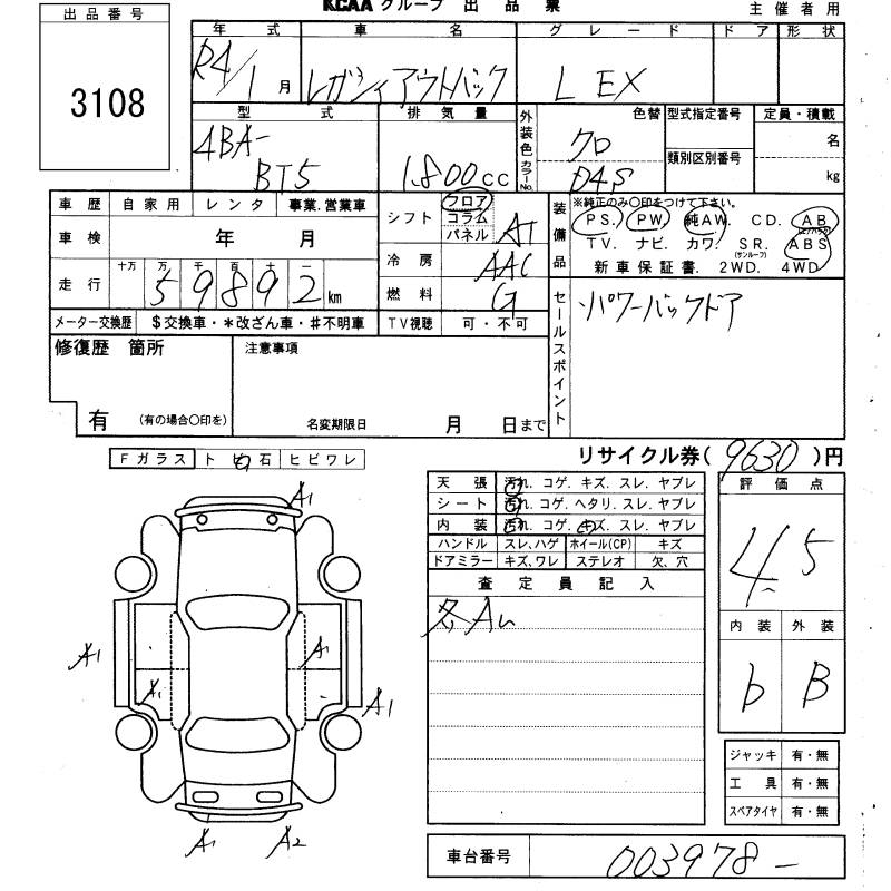 SUBARU OUTBACK LIMITED EX - лот 3108