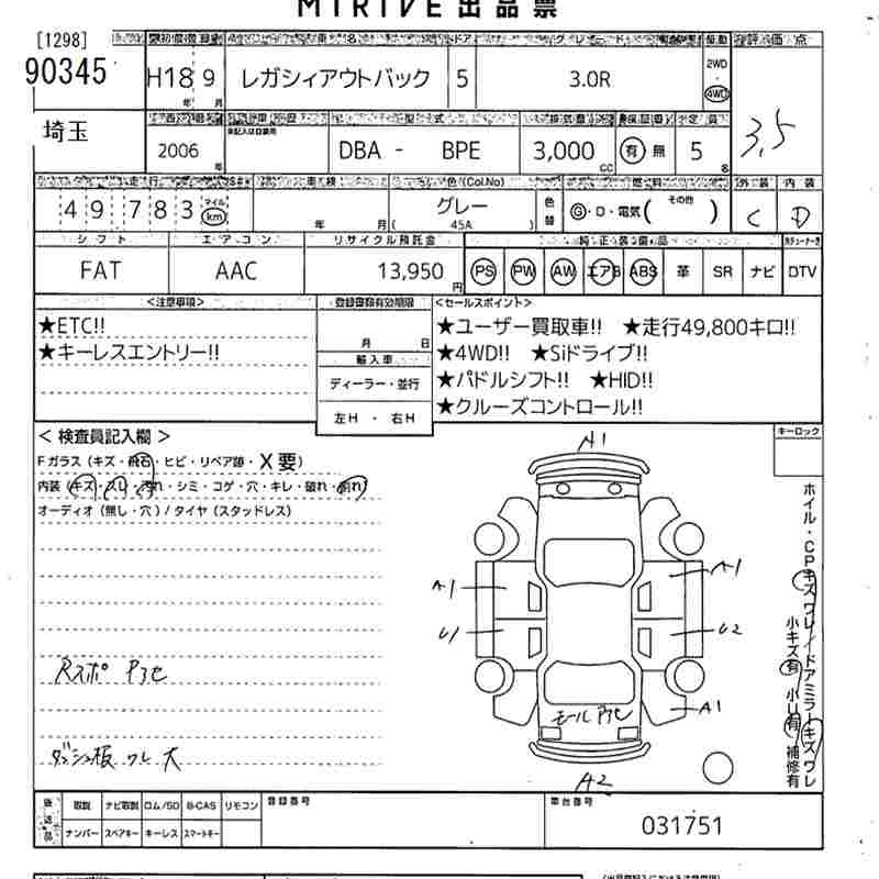 SUBARU OUTBACK 3.0R - лот 90345