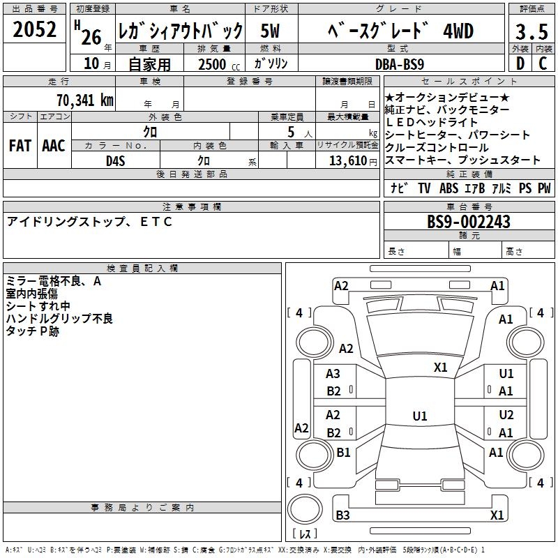 SUBARU OUTBACK BASE GRADE 4WD - лот 2052