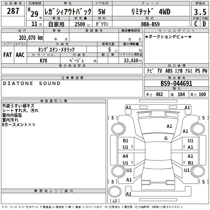 SUBARU OUTBACK LIMITED 4WD - лот 287