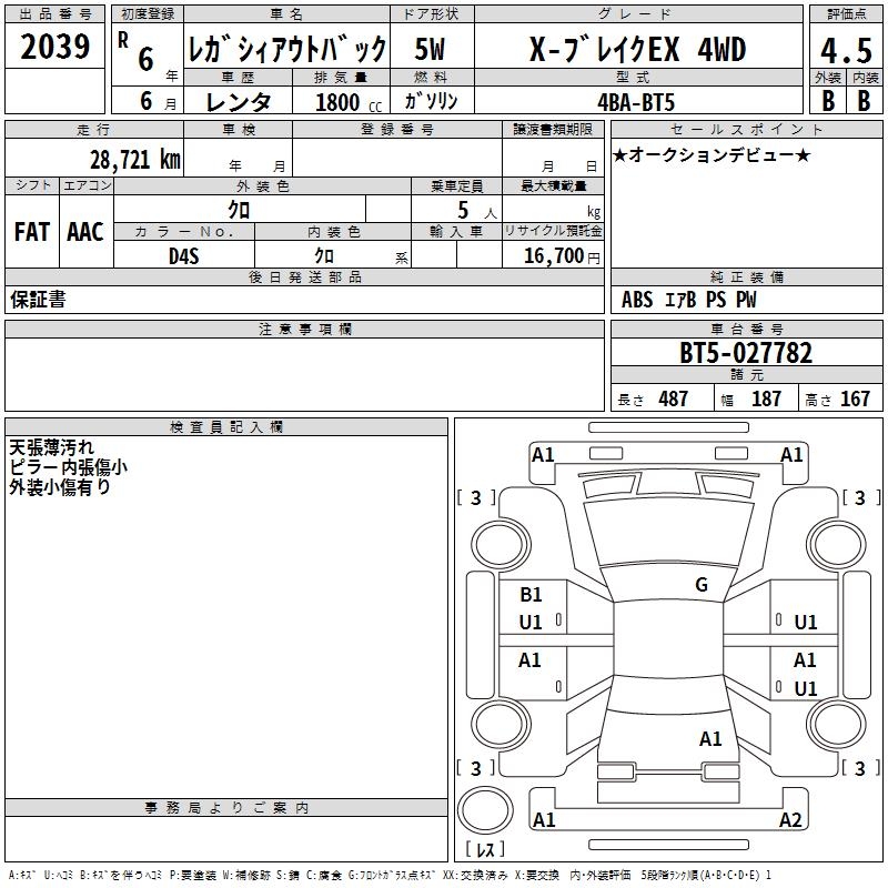 SUBARU OUTBACK X- BREAK EX 4WD - лот 2039