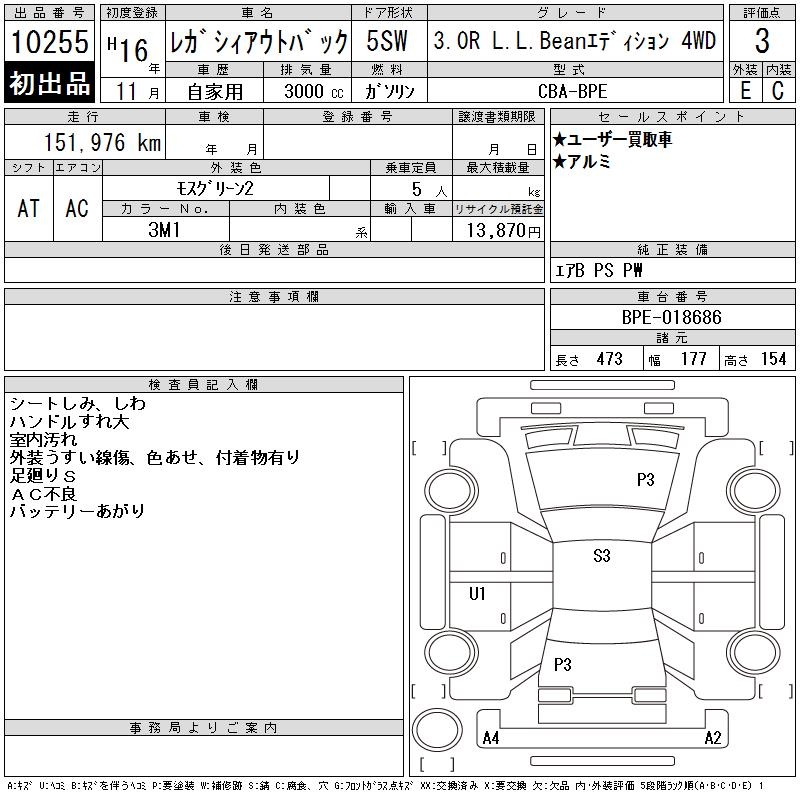 SUBARU OUTBACK 3.0R L.L.BEANETE4WD - лот 10255