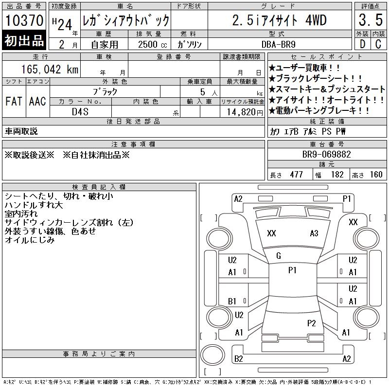 SUBARU OUTBACK 2.5I EYESIGHT 4WD - лот 10370
