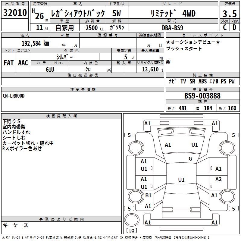 SUBARU OUTBACK LIMITED 4WD - лот 32010