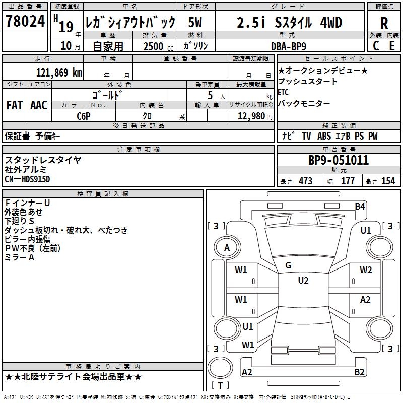 SUBARU OUTBACK 2.5I S STYLE 4WD - лот 78024