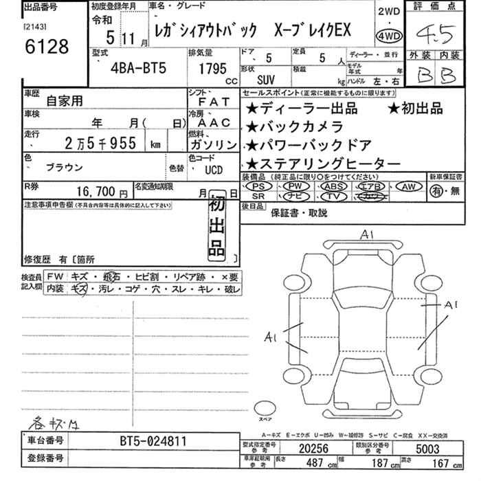 SUBARU OUTBACK X BREAK EX 4WD - лот 6128
