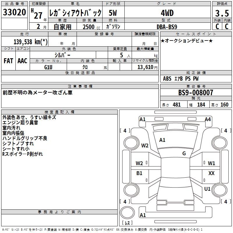 SUBARU OUTBACK 4WD - лот 33020