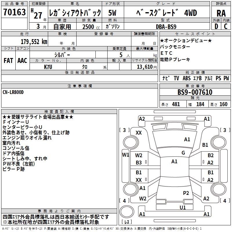 SUBARU OUTBACK BASE GRADE 4WD - лот 70163