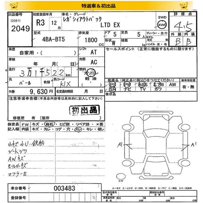 SUBARU OUTBACK 4WD LTD EX - лот 2049