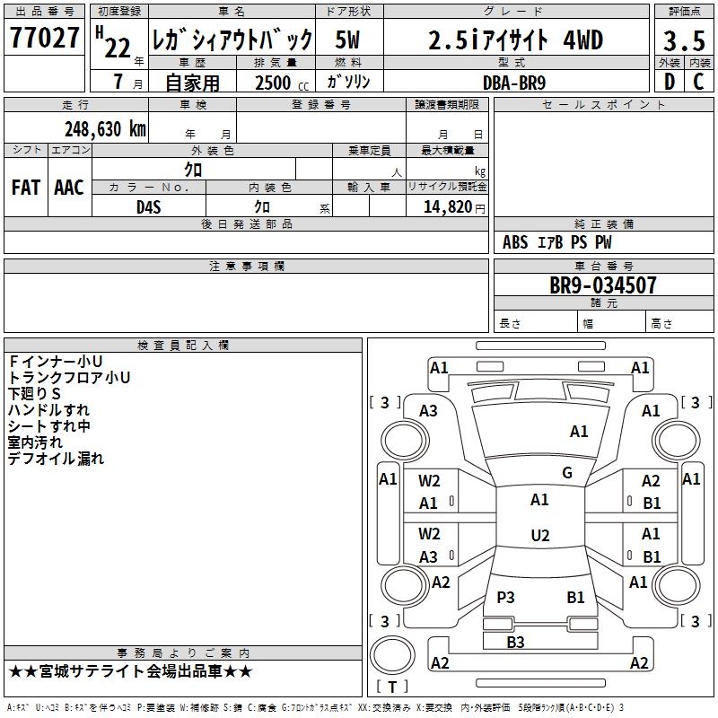 SUBARU OUTBACK 2.5I EYESIGHT 4WD - лот 77027
