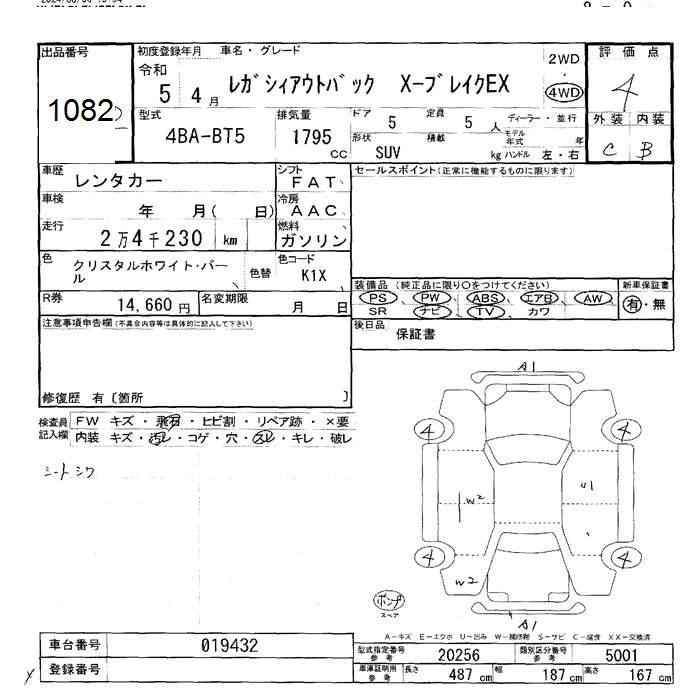 SUBARU OUTBACK X Break EX - лот 1082