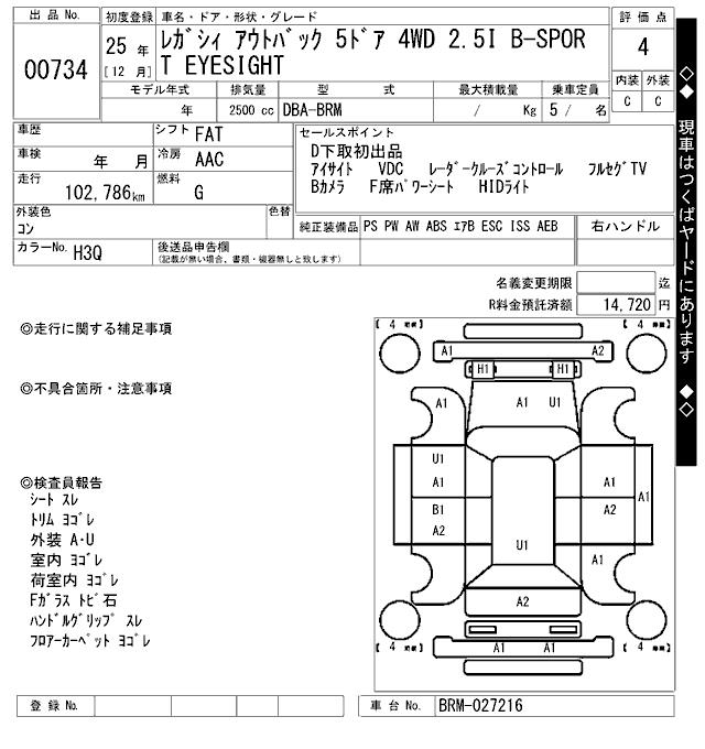 SUBARU OUTBACK - лот 734