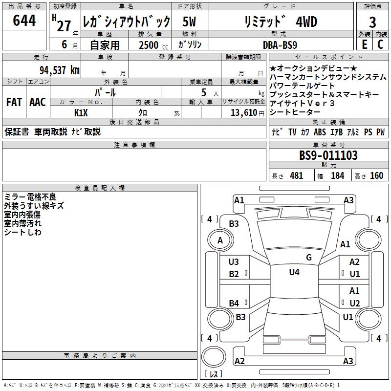 SUBARU OUTBACK - лот 644