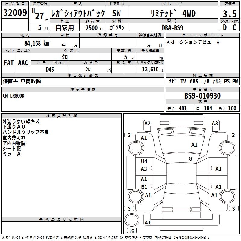 SUBARU OUTBACK limited 4WD - лот 32009