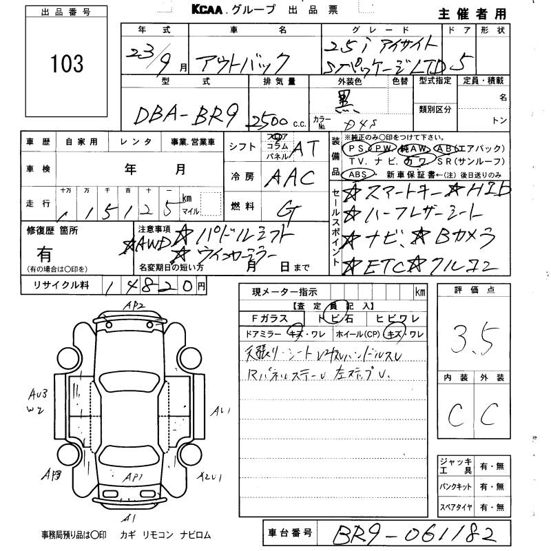 SUBARU OUTBACK - лот 103