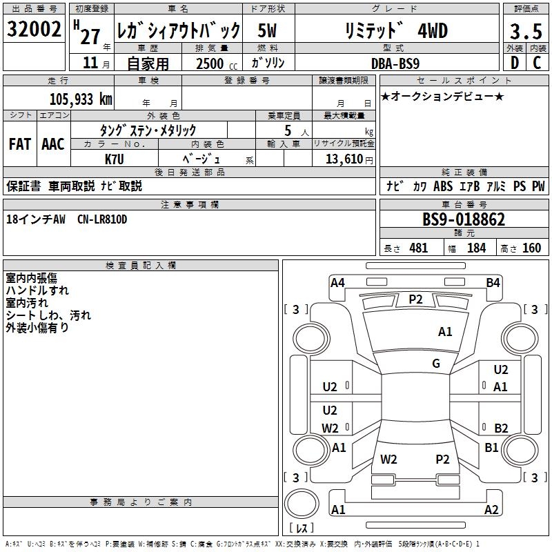 SUBARU OUTBACK - лот 32002