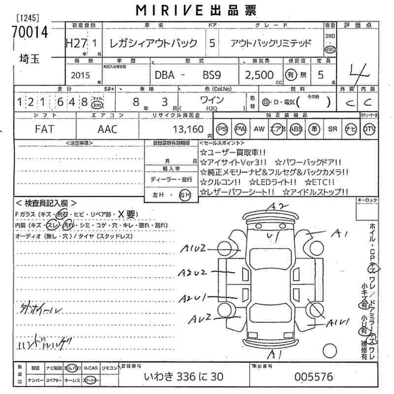 SUBARU OUTBACK - лот 70014