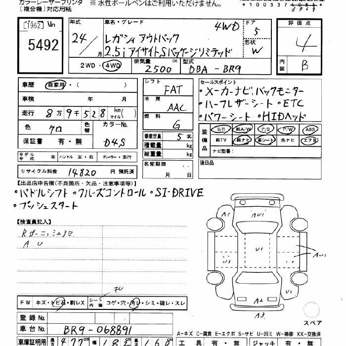 SUBARU OUTBACK - лот 5492