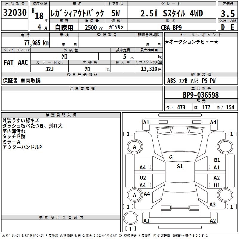 SUBARU OUTBACK - лот 32030