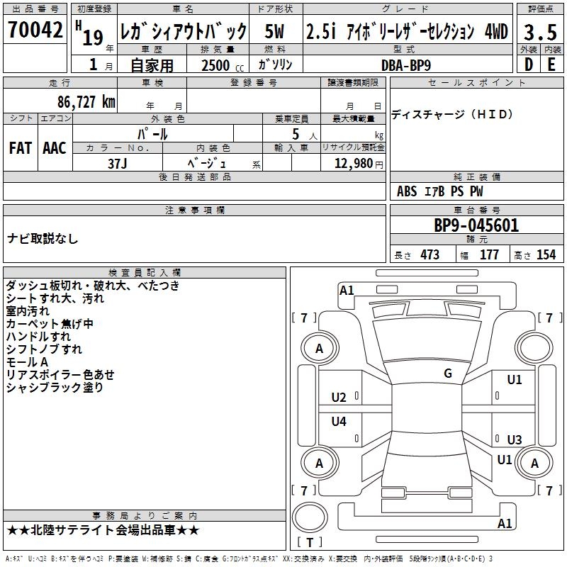 SUBARU OUTBACK - лот 70042