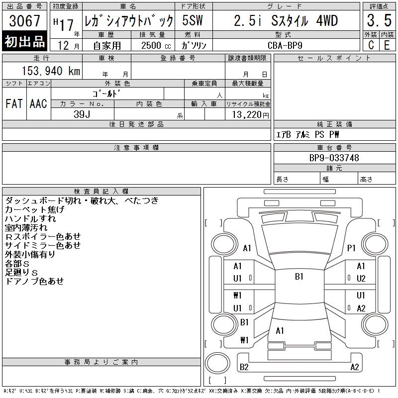 SUBARU OUTBACK - лот 3067