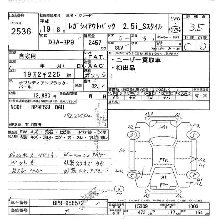 SUBARU OUTBACK - лот 2536