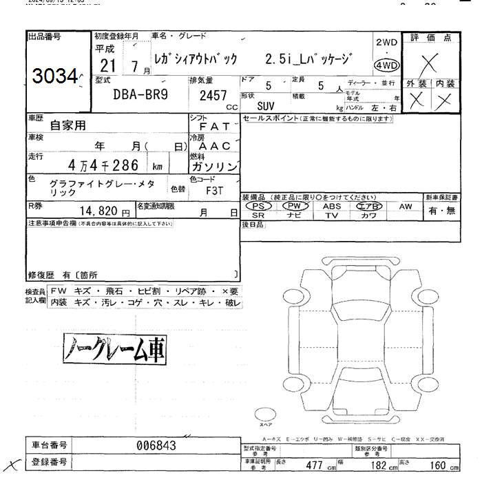 SUBARU OUTBACK - лот 3034