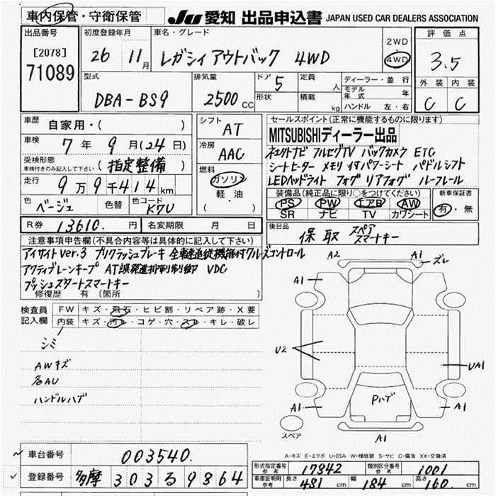 SUBARU OUTBACK - лот 71089